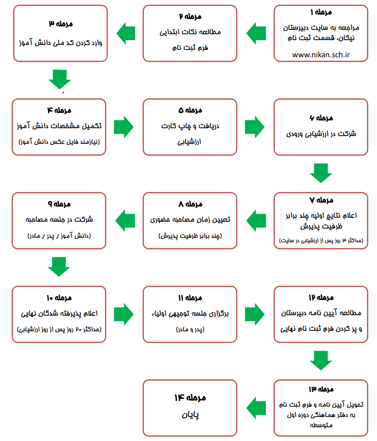 - ثبت نام به صورت اینترنتی و از طریق سایت www.nikan.sch.ir خواهد بود.